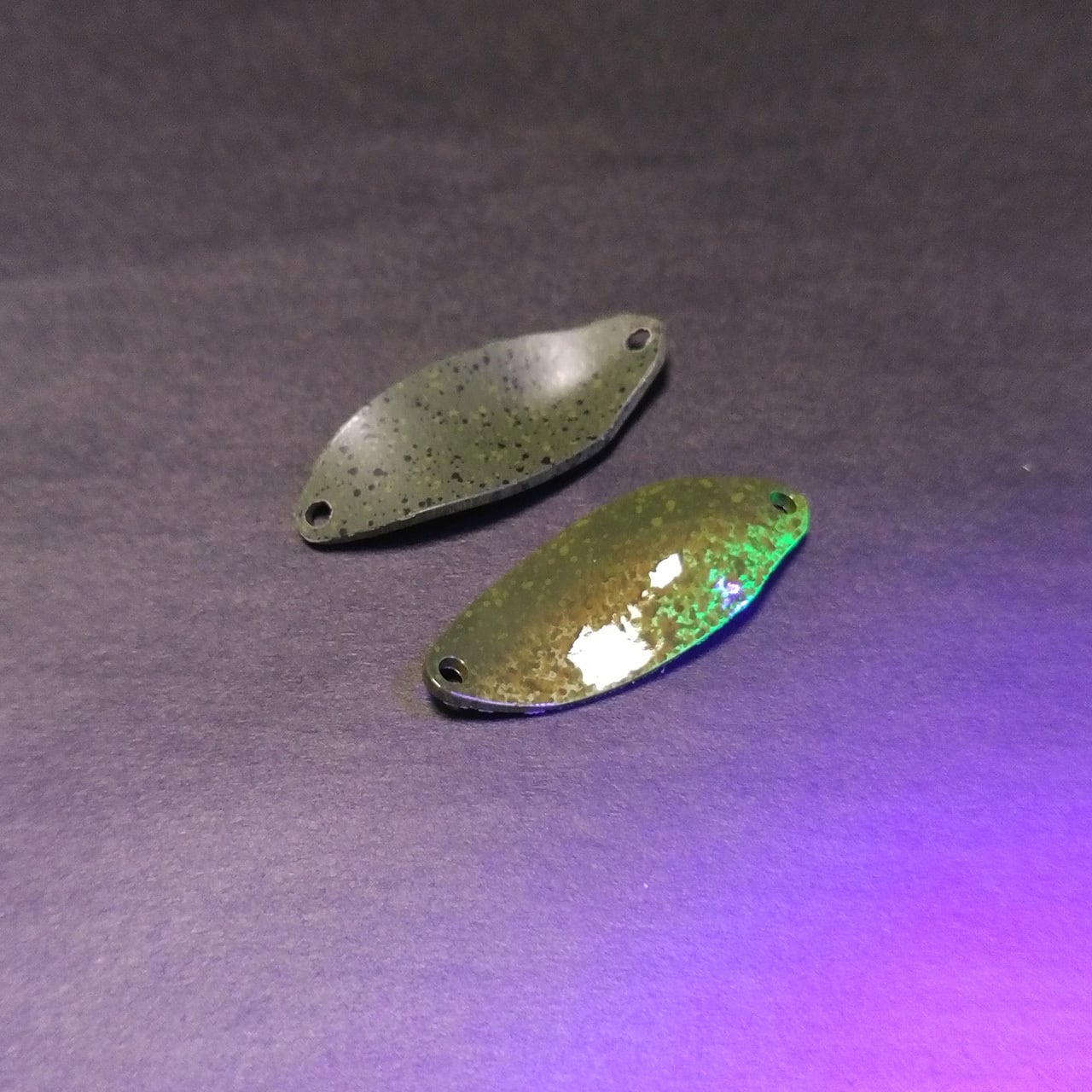 ゆっくりしたスピードではスライドが強めに入る立ち泳ぎで、標準スピード以上では一定の振り子泳ぎに不規則に千鳥泳ぎが入ります。不規則な泳ぎでリアクションを誘うタイプのスプーンです。