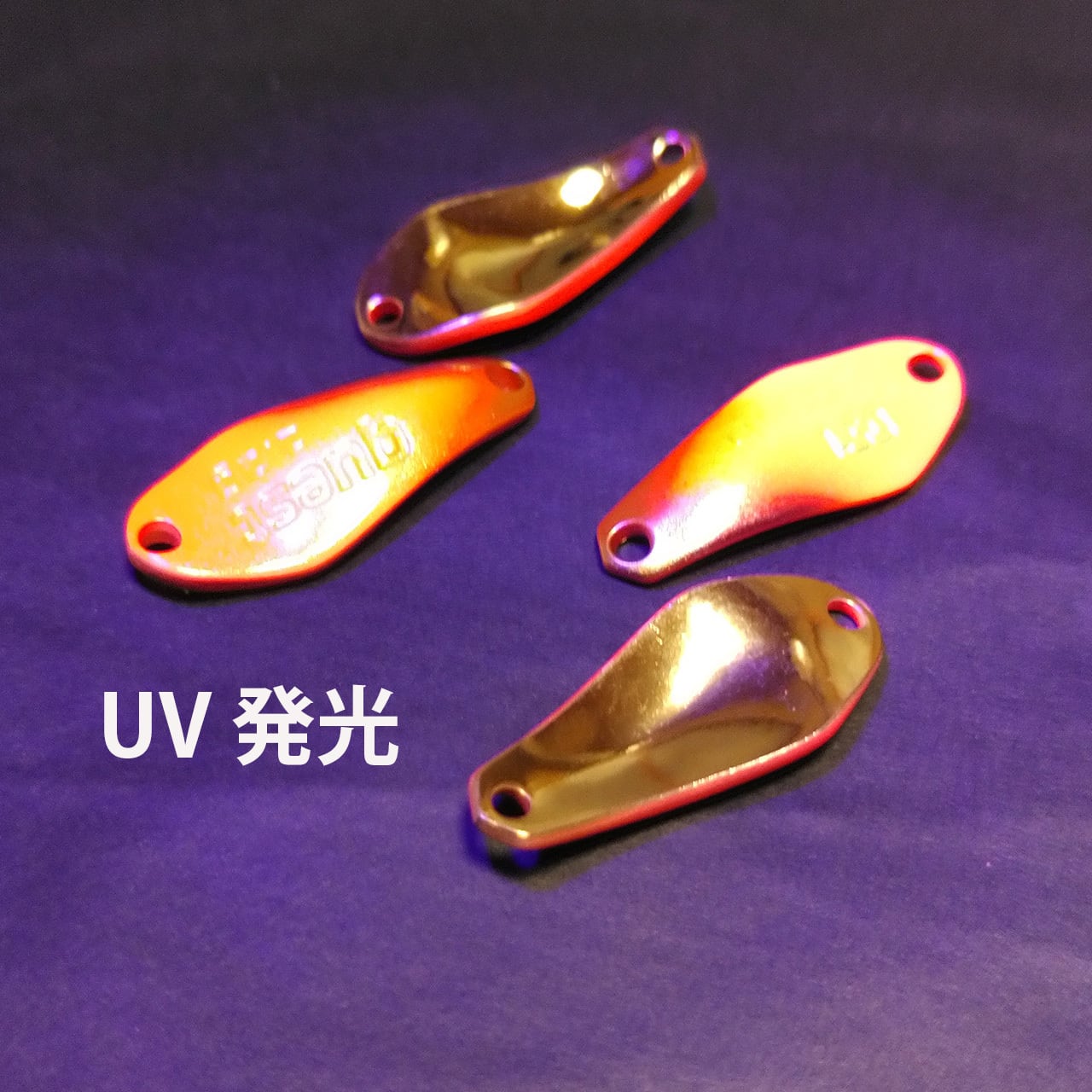 裏面ゴールドメッキに表は蛍光レッドと蛍光ピンクを混ぜてつくった発色の良い蛍光レッド。