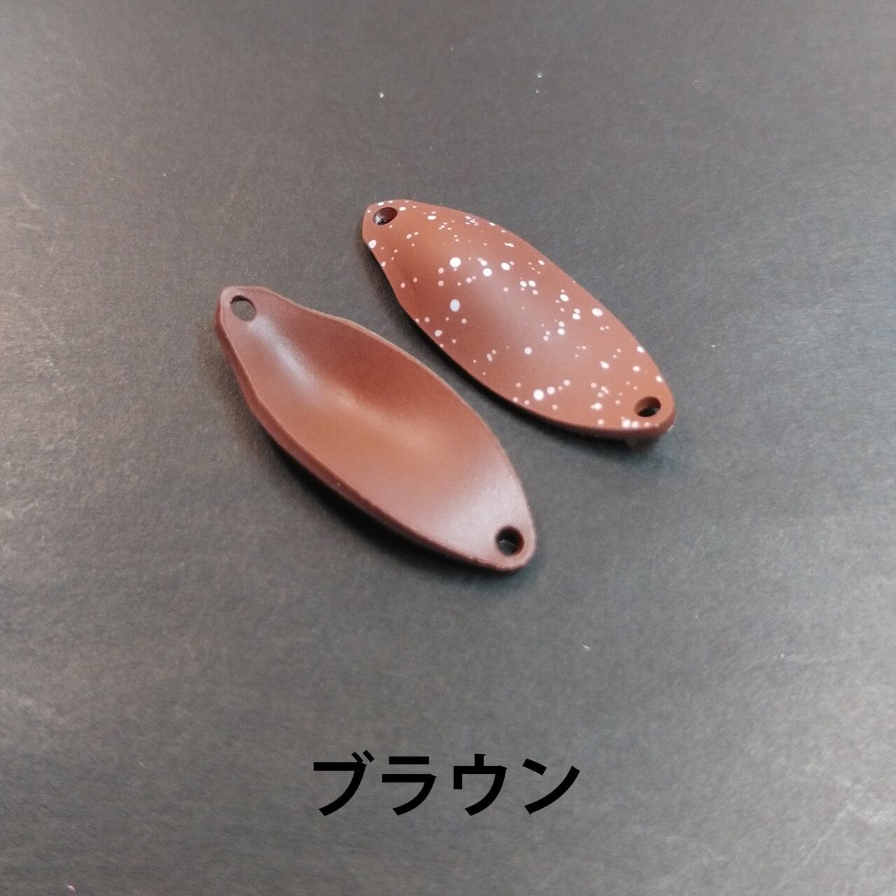 裏表とも同一のブラウンで塗装し表面にのみホワイトを飛ばしました。マットクリア仕上げです。