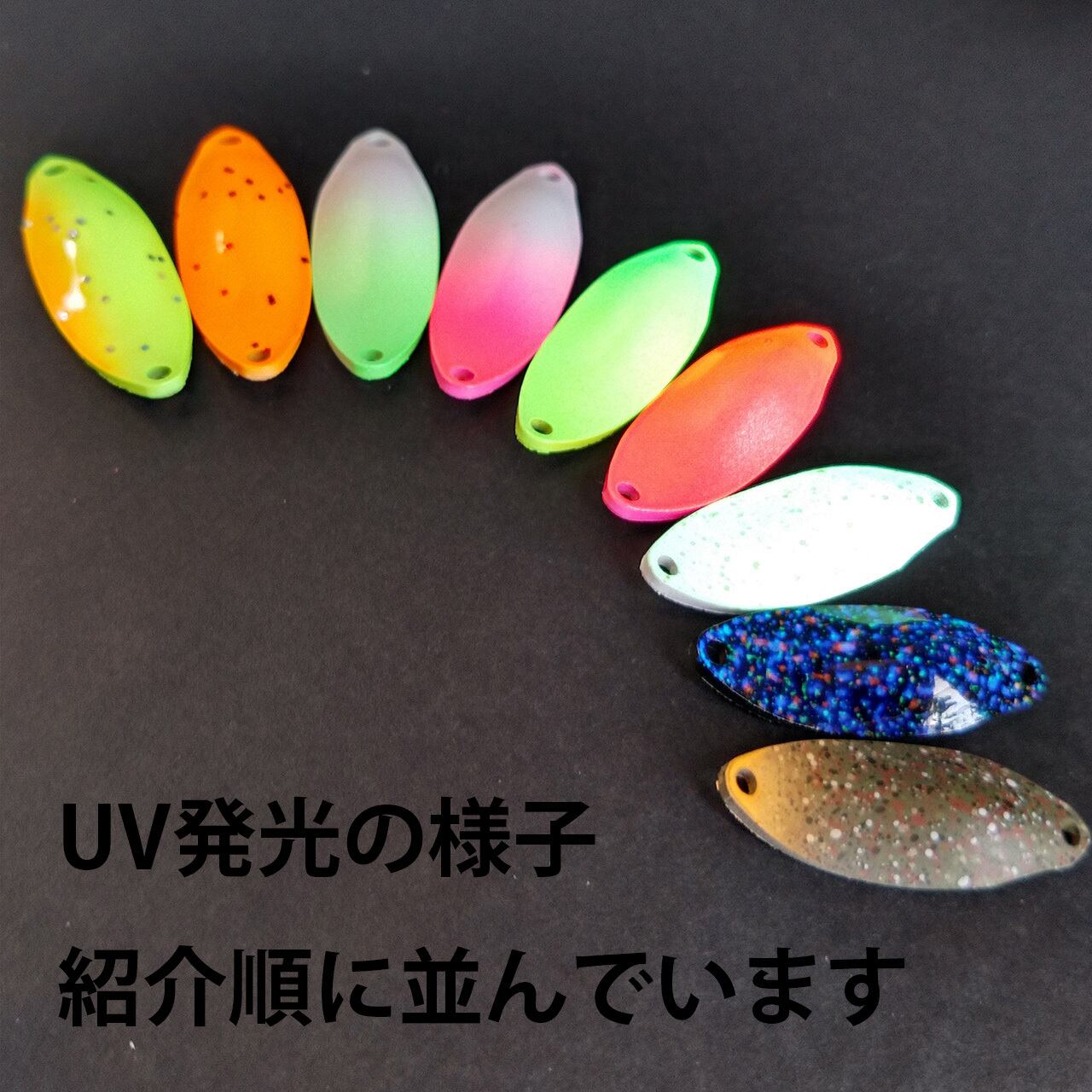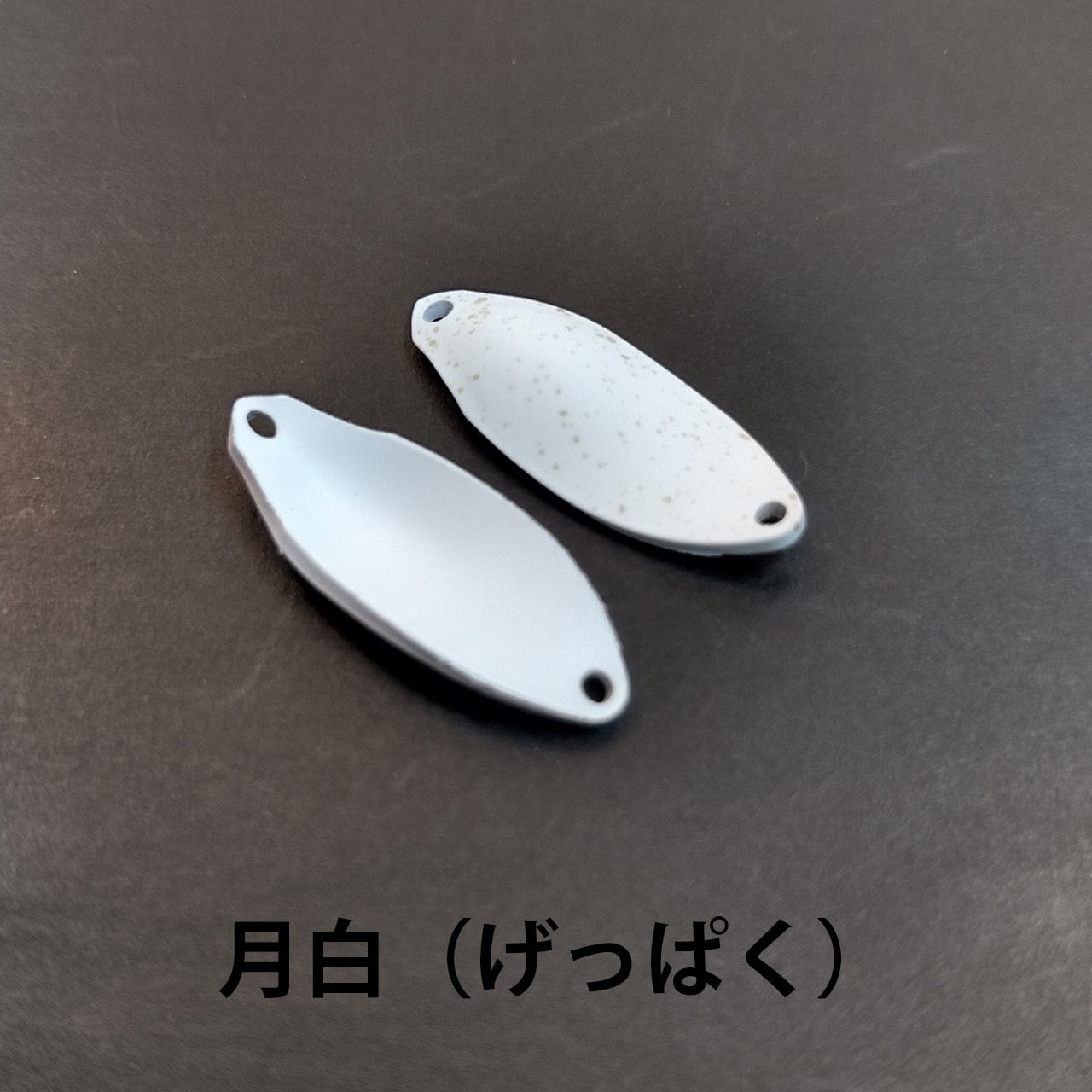 表はホワイトベースにグリーングローを重ねてライトオリーブを飛ばしマットクリアで仕上げました。裏面はマットホワイトです。