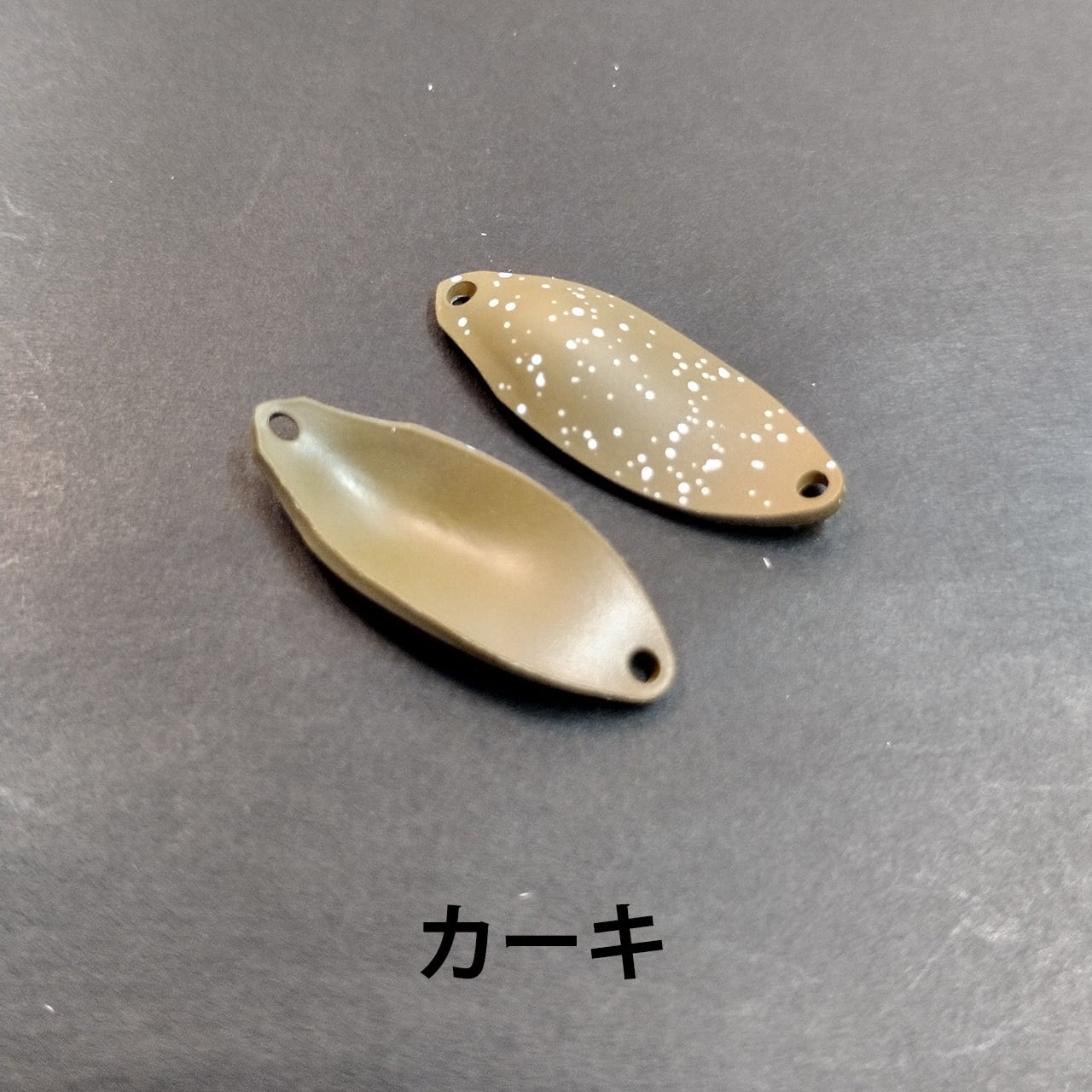 裏表とも同一のカーキで塗装し表面にのみホワイトを飛ばしました。マットクリア仕上げです。