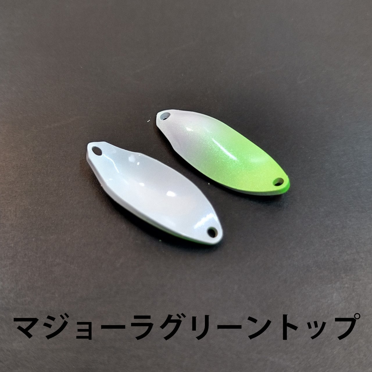 表はホワイトをベースにトップに蛍光グリーンを吹いて、表面にマジョーラネオマッターホルンを重ねました。裏面はホワイトベースにブルーパールを乗せて仕上げています。