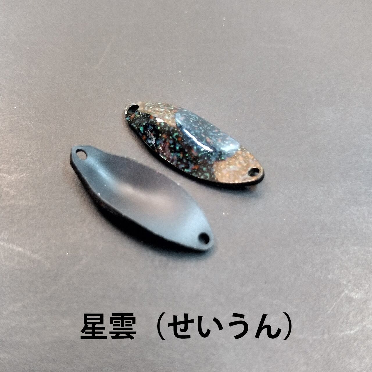 表は蛍光イエローをベースにパールホワイトを重ねました。裏面はマットブラックです。