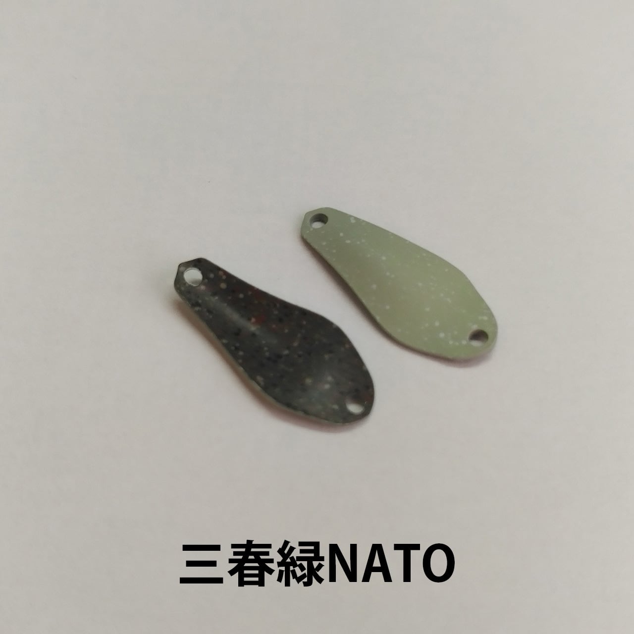 表面は薄いライトオリーブをベースにUVクリアグリーンとホワイトを飛ばしてトッピング。裏面をNATO迷彩(ダークオリーブをベースに、ブラウン、ライトオリーブ、ライトカーキ、ブラック飛ばし)で仕上げました。